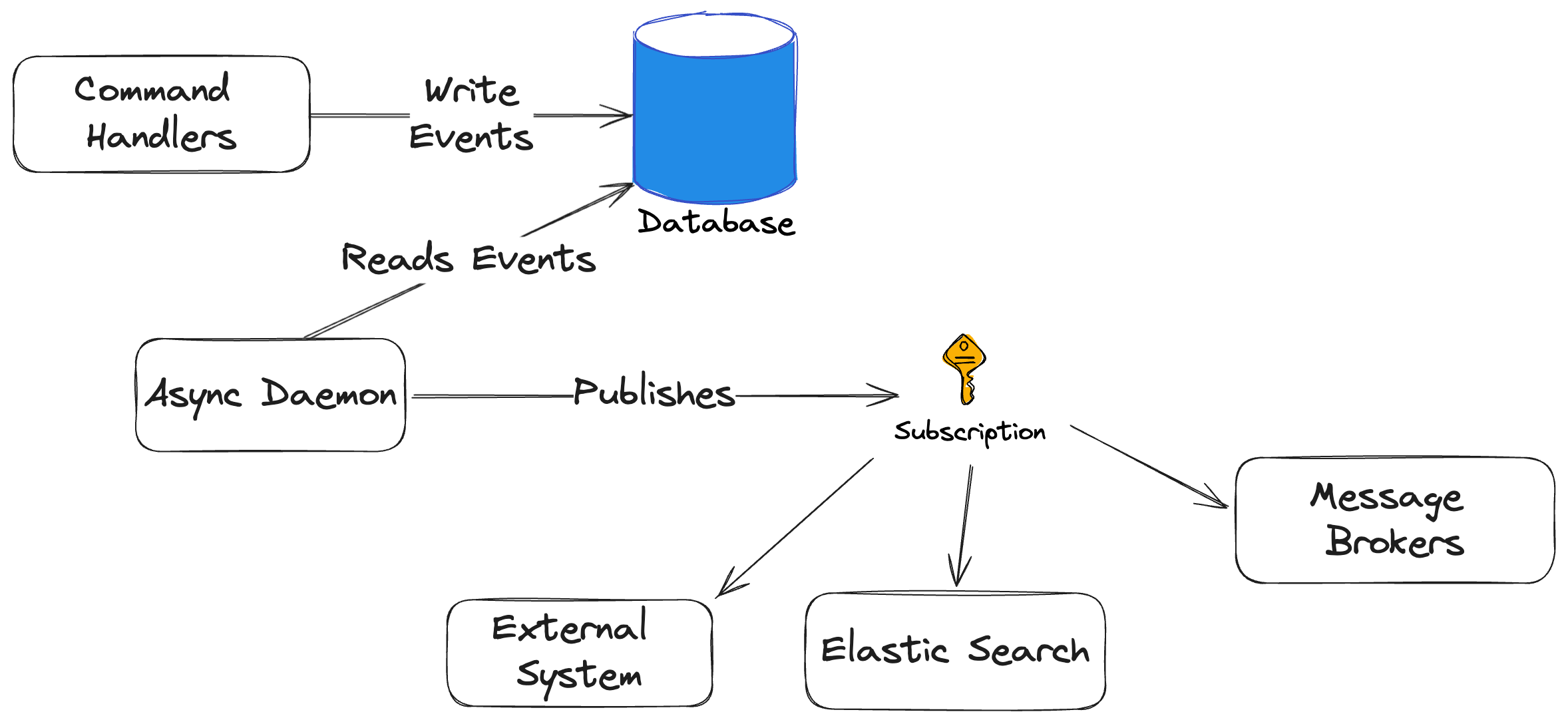 With this recently added feature, you can utilize Marten’s ISubscription model that runs within Marten’s async daemon subsystem to “push” events into your subscriptions as events flow into your system. Note that this is a background process within your application, and happen in a completely different thread than the initial work of appending and saving events to the Marten event storage.