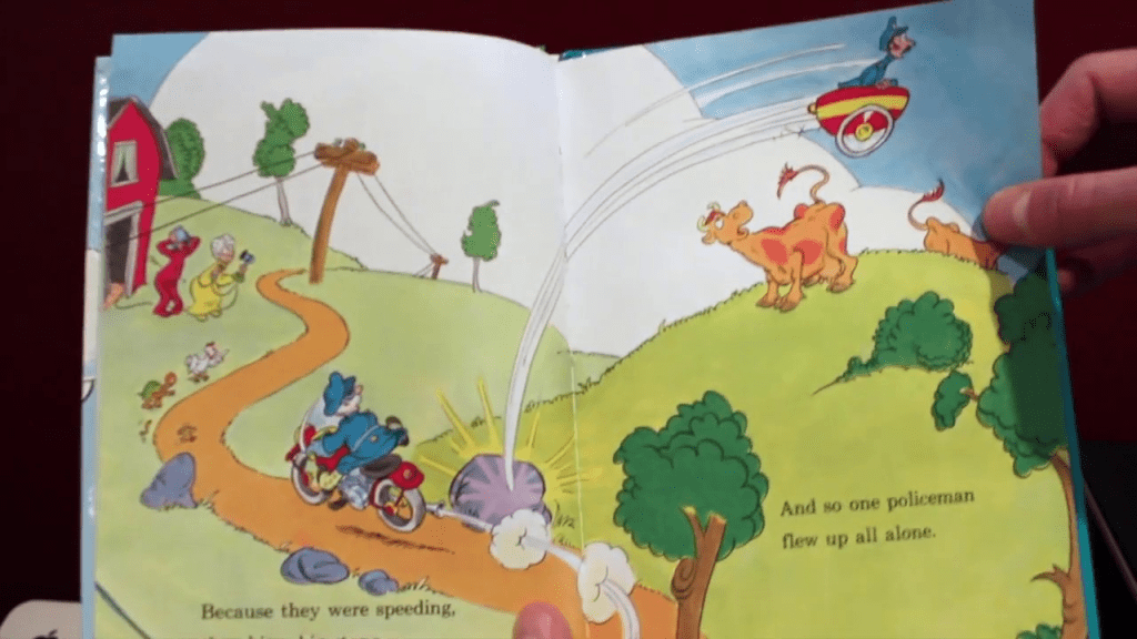 My youngest is very quickly outgrowing Dr. Seuss books, but we still read “Because a Bug went Kachoo!” above